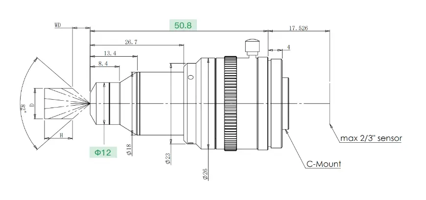 Compact design: The inner wall inspection of the cylindrical lithium battery shell needs to be carried out in a relatively limited space. It is easy to probe into the inner shell using the compact lens, and comprehensive inspection can be conducted even in space-constrained conditions. In addition, because it is tiny, the lens can be flexibly configured in complex or narrow production environments, allowing the inspection equipment to adapt to batteries of different sizes or shapes. For situations where portable inspection equipment is required, the lens is very easy to carry and reconfigure. This design greatly improves the flexibility of inspection and operation.