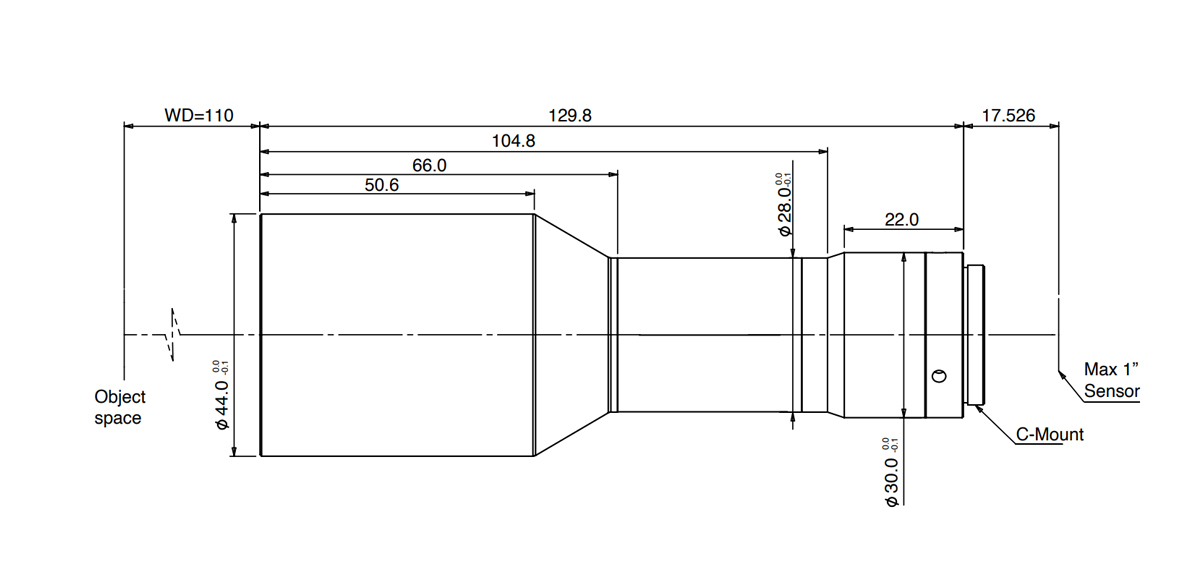 Working Distance(mm) | 110±2 | Max Sensor Size(φmm) | 16.0(1") | ||||