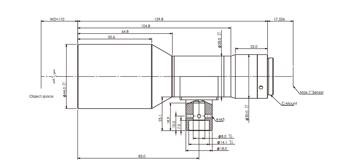 Working Distance(mm) 110±2 Max Sensor Size(φmm) 16.0(1")