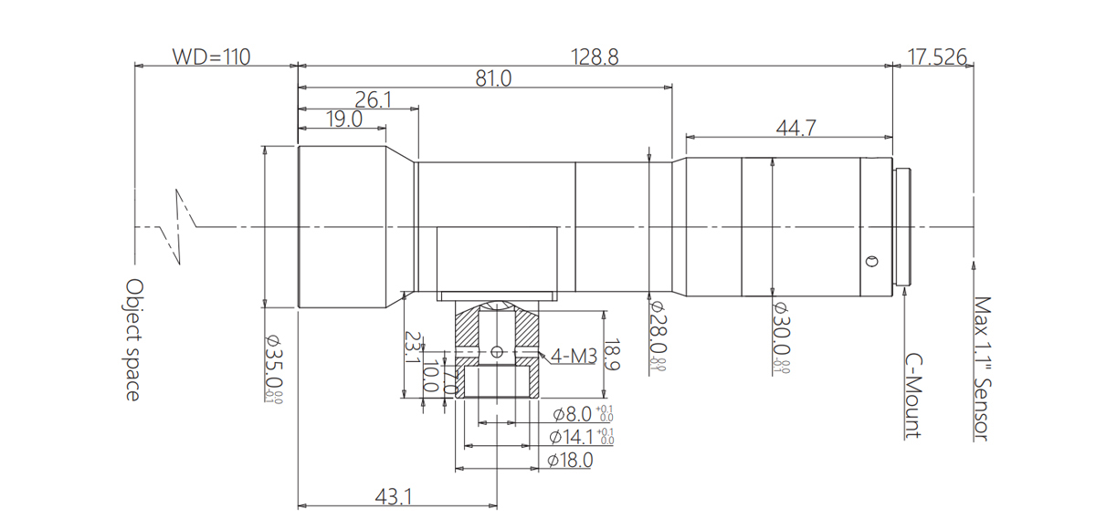 Working Distance(mm) 110±2 Max Sensor Size(φmm) 18.0(1.1")