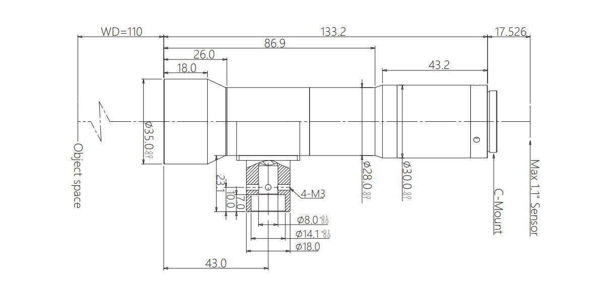 Working Distance(mm) | 110±2 | Max Sensor Size(φmm) | 18.0(1.1") | ||||