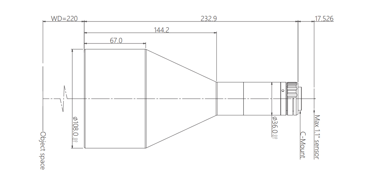 Length (mm) | 232.9 | MTF30 (lp/mm) | >100 | ||||