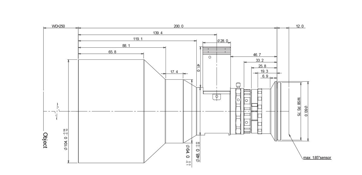 Object Field of View (Φmm) 81.1  Working Distance (mm) 250±3
